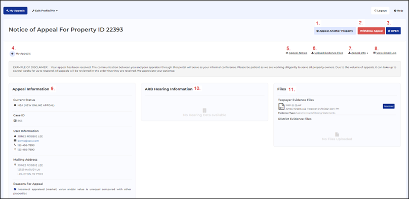 My Appeals Page