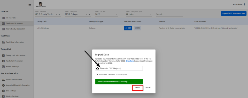 - This function allows the client to import data into the tax rate worksheets.